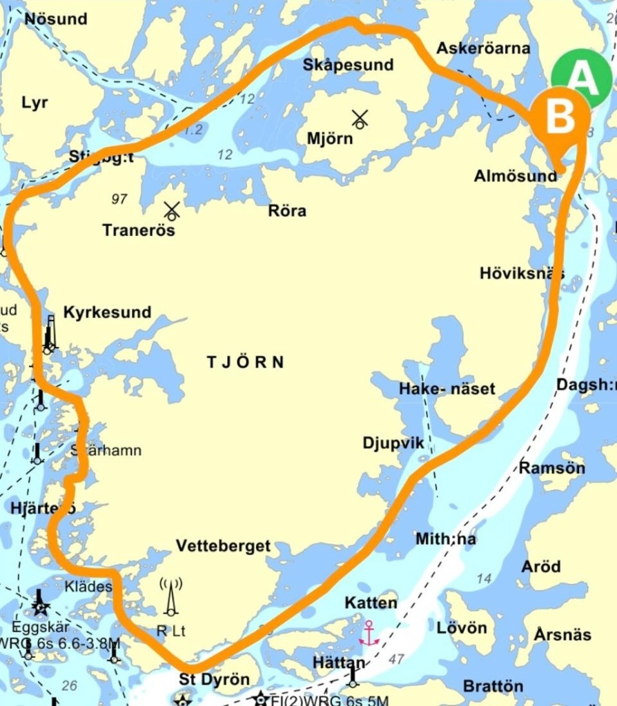Precis som segelbåtstävlingen går även E-power Run medsols runt Tjörn. Starten för elbåtarna går kl 8:50 på Askeröfjorden på lördag morgon, dvs 10 minuter innan segeltävlingen startar kl 9:00.